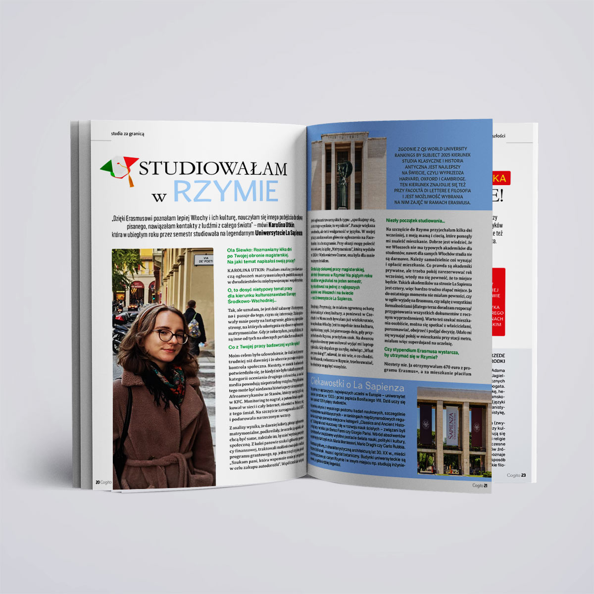• Studia za granicą: Studiowałam w Rzymie. „Dzięki Erasmusowi poznałam lepiej Włochy i ich kulturę, nauczyłam się innego podejścia do słowa pisanego, nawiązałam kontakty z ludźmi z całego świata” – mówi Karolina Utkin, która studiowała na legendarnym Uniwersytecie La Sapienza.