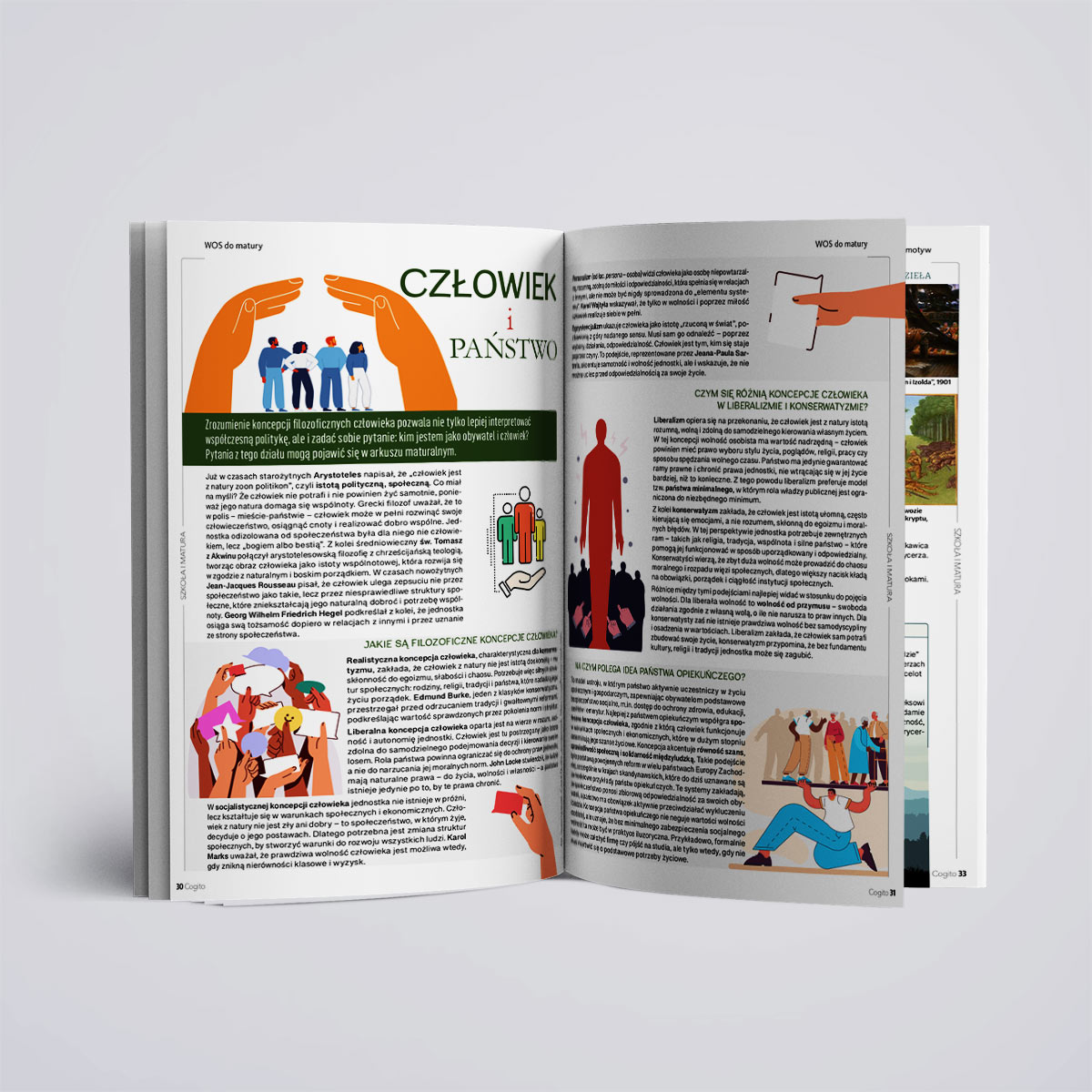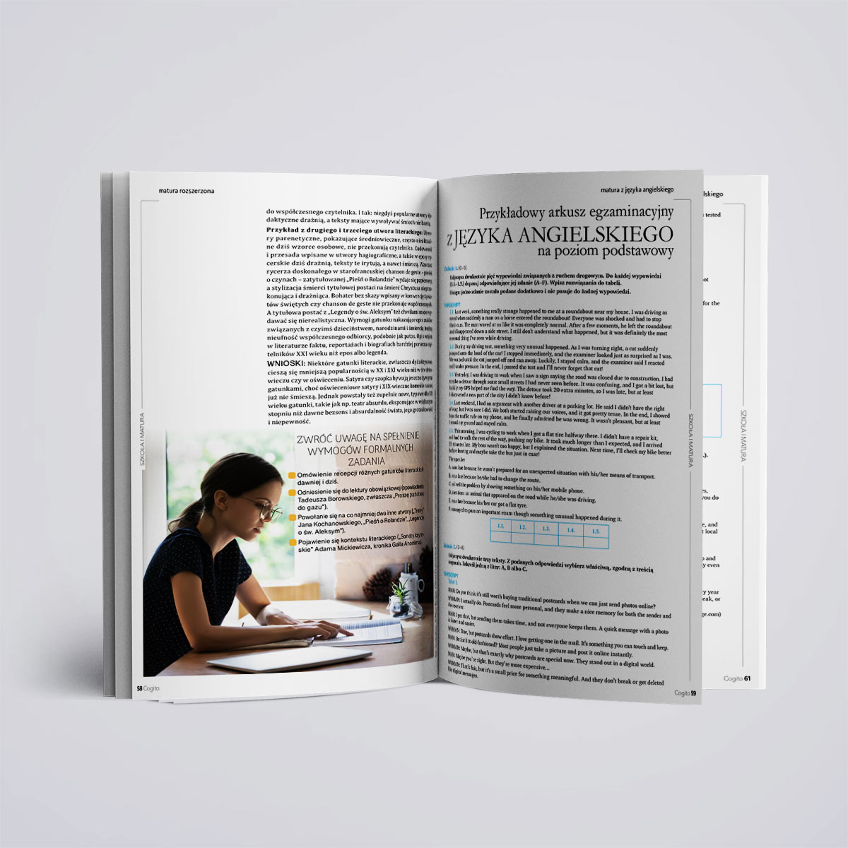„Bardzo często to strach, brak wiary w siebie albo przekonanie, że to i tak nic nie zmieni, powstrzymują nas przed działaniem. A prawda jest taka, że czasem wystarczy zacząć od jednego pomysłu czy rozmowy, żeby pociągnąć za sobą innych” – mówi Pola Mrowińska, współorganizatorka WawMUN. Wielu młodych ludzi powstrzymuje też przed działaniem myślenie o sobie, że nie są geniuszami. Warto spojrzeć na przeciętność z innej perspektywy, polubić ją i docenić, bo bycie przeciętnym to często znaczy, że… robisz swoje, starasz się, jak potrafisz, umiesz się cieszyć z małych rzeczy. Zajrzyjcie do Punktu widzenia, a przekonacie się, że nie ma nic złego w tym, że nie jesteśmy wybitni. Róbcie coś dla siebie, nie dla innych. Tak jak Agata Bocheńska z zespołu Na Poddaszu, wyróżnionego Nagrodą „Cogito” na Bazunie, która doceniła to, że muzyka łączy ludzi. „Bycie exchange studentem to wspaniała sprawa!” – zachęca z kolei Zuzia Wrzeszcz. Myślicie już o tym, co będziecie robić po maturze? Cezary Kołodziejek z Rady Studentów przy Prezesie Polskiej Agencji Kosmicznej zapewnia, że kosmos to interdyscyplinarność i tu na pewno będzie praca. Piszemy też o filologiach egzotycznych i studiach nad wizualnością. W czasach, kiedy coraz więcej za nas „myślą” algorytmy, świadome myślenie oznacza niezależność. Pokazujemy, jak wykorzystać tę umiejętność podczas egzaminu dojrzałości. A skoro o maturze – zaglądajcie do powtórek „Cogito” z języka polskiego, WOS-u, angielskiego. Korzystajcie z nich, bo już za moment matura próbna…